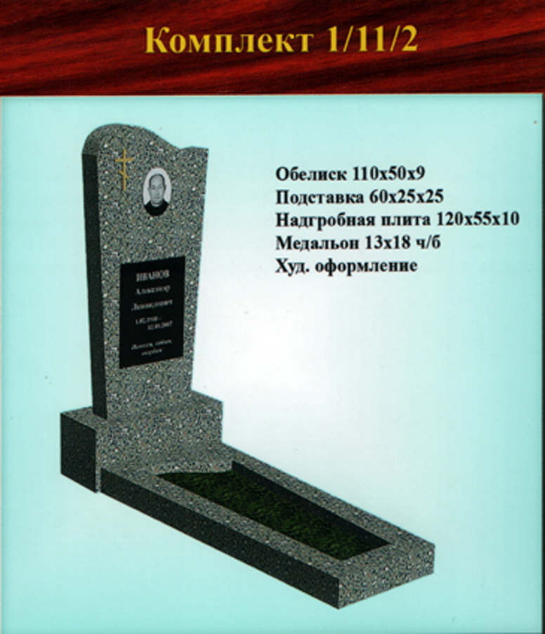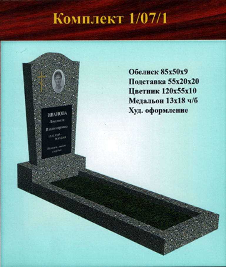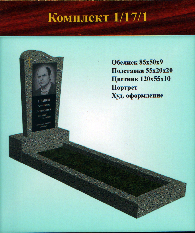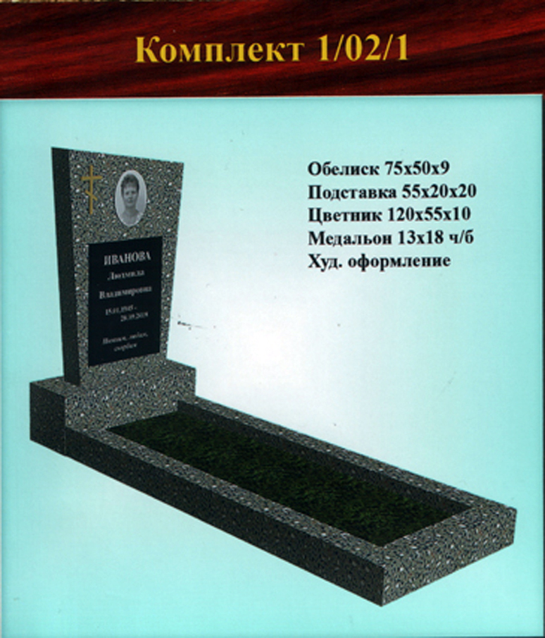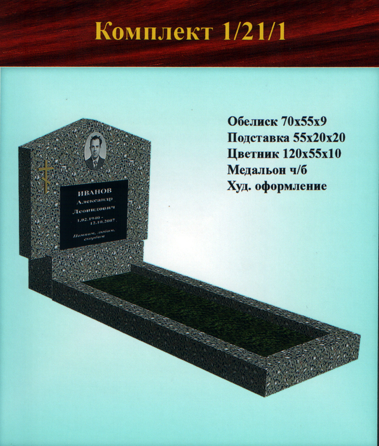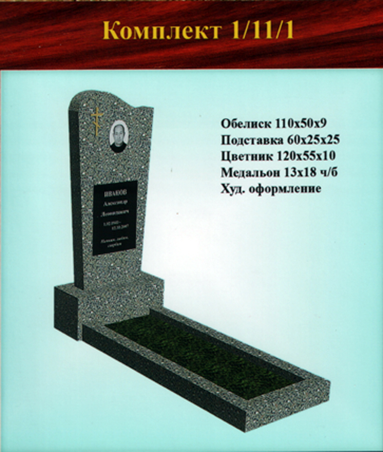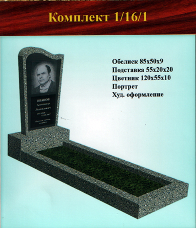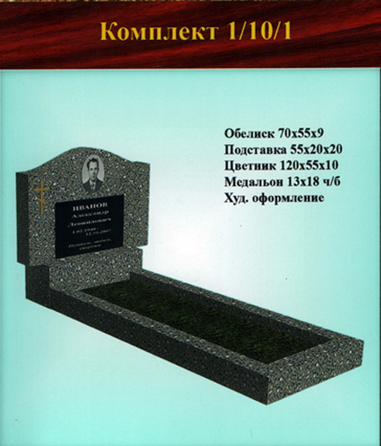 В данном разделе представлены стандартные модели одиночных памятников из гранитно-мраморной крошки, разработанные на основании наиболее часто заказываемых клиентами форм. Цифровое обозначение комплектов (обелиск+подставка+цветник) одиночных памятников из крошки имеет следующее значение: