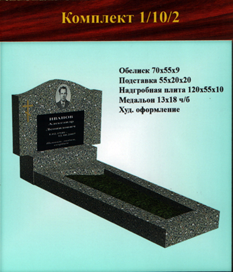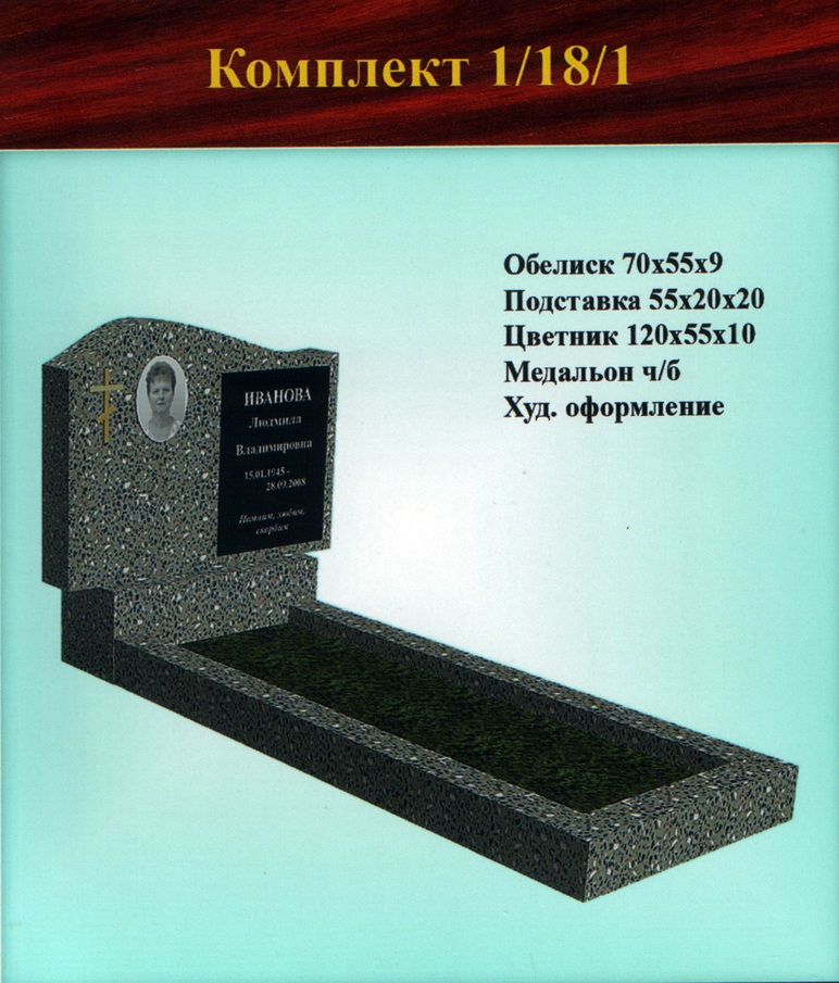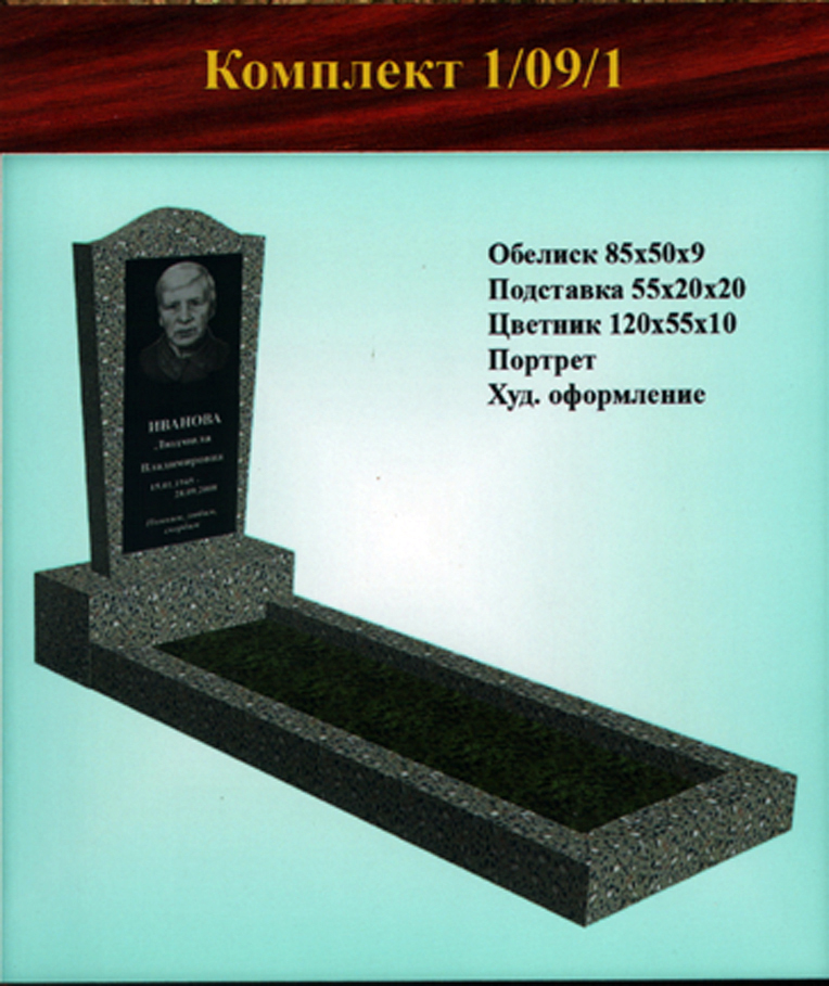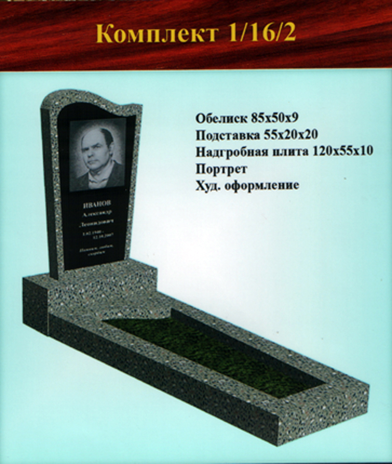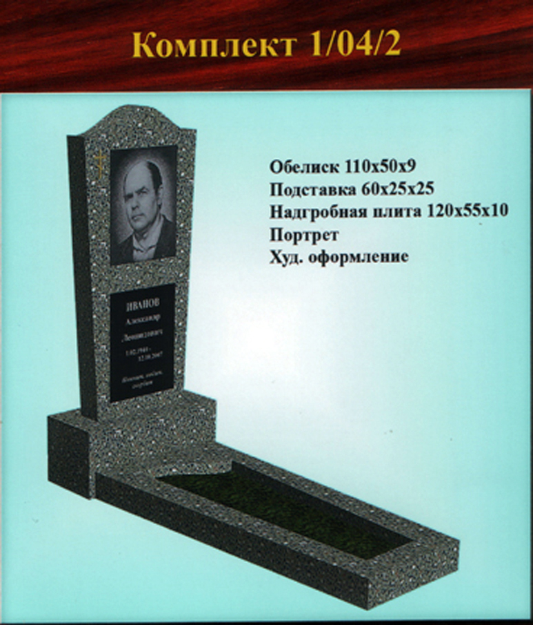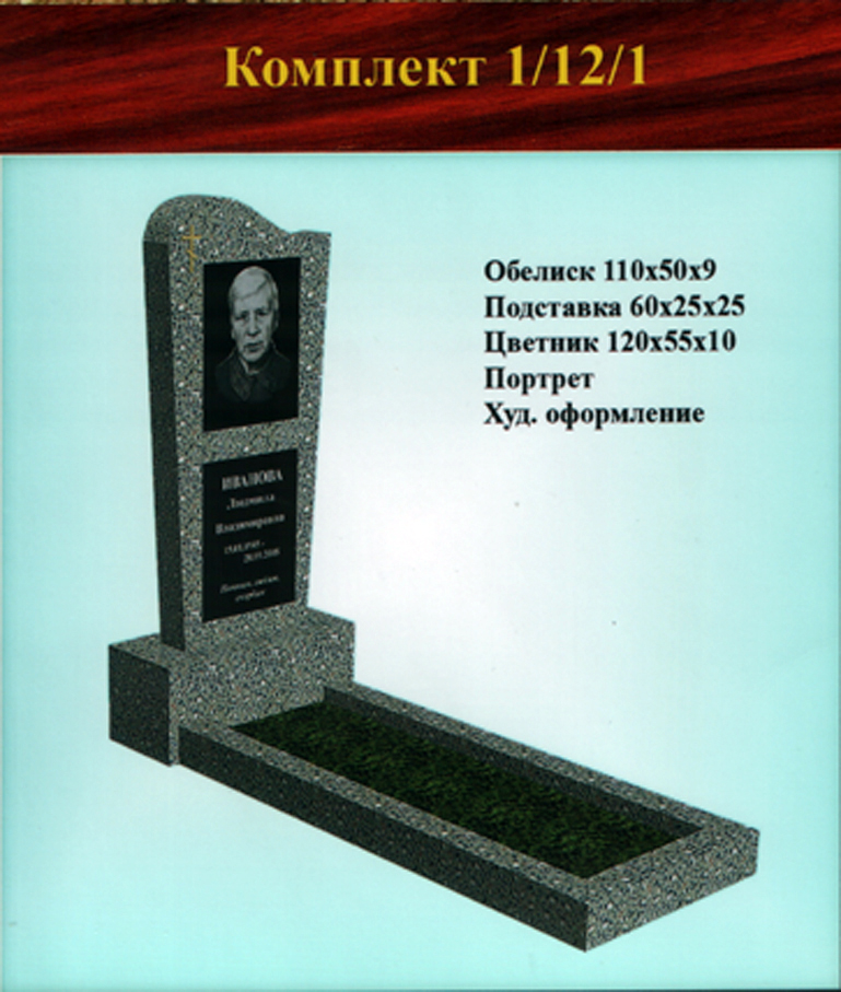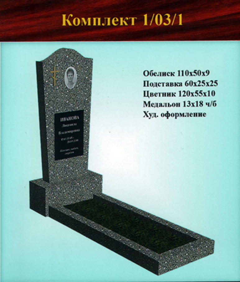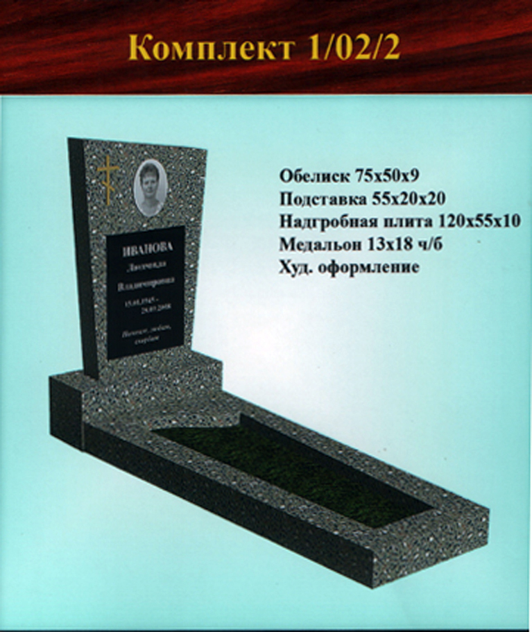 В данном разделе представлены стандартные модели одиночных памятников из гранитно-мраморной крошки, разработанные на основании наиболее часто заказываемых клиентами форм. Цифровое обозначение комплектов (обелиск+подставка+цветник) одиночных памятников из крошки имеет следующее значение:
