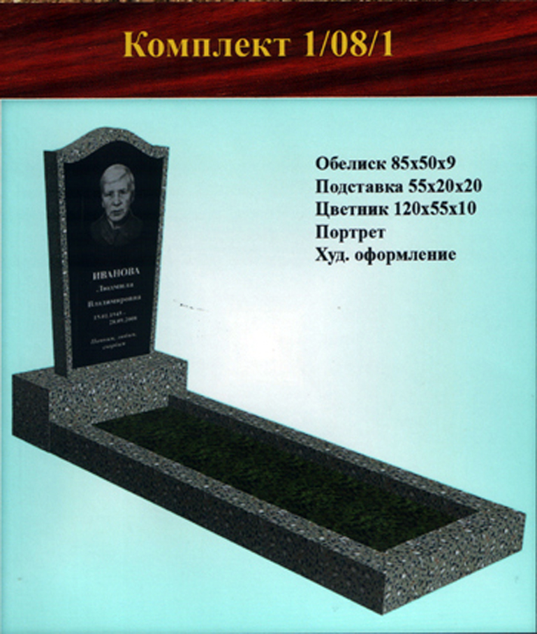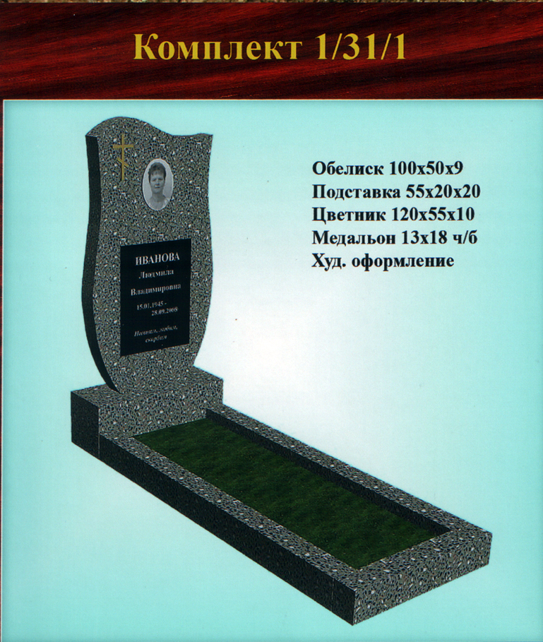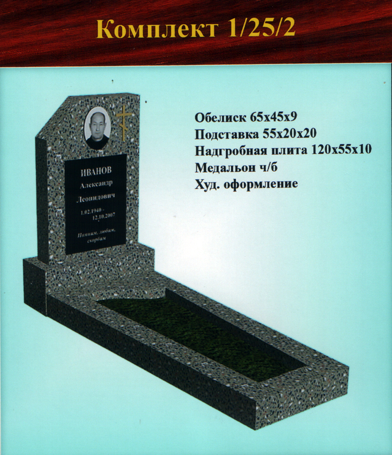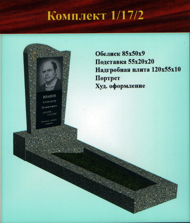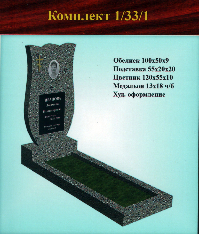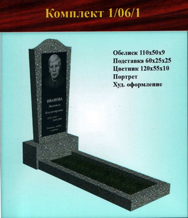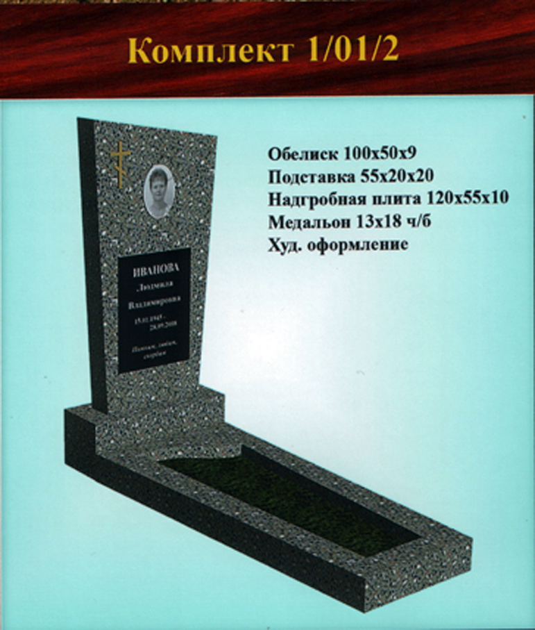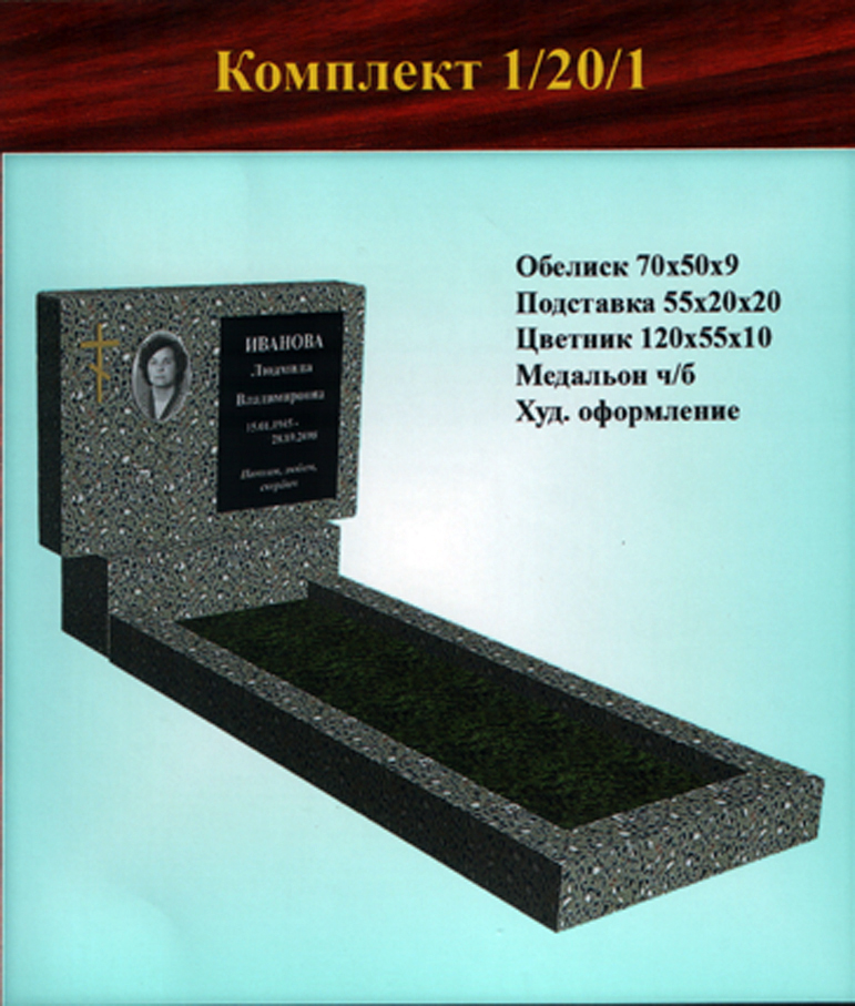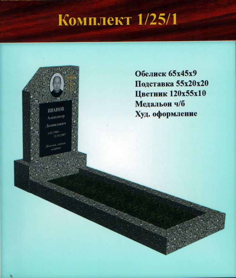 В данном разделе представлены стандартные модели одиночных памятников из гранитно-мраморной крошки, разработанные на основании наиболее часто заказываемых клиентами форм. Цифровое обозначение комплектов (обелиск+подставка+цветник) одиночных памятников из крошки имеет следующее значение: