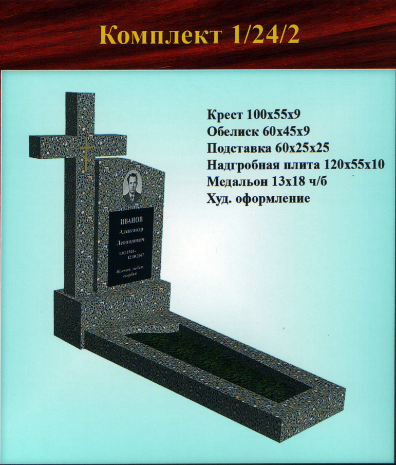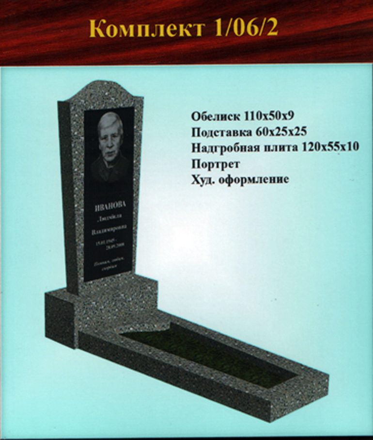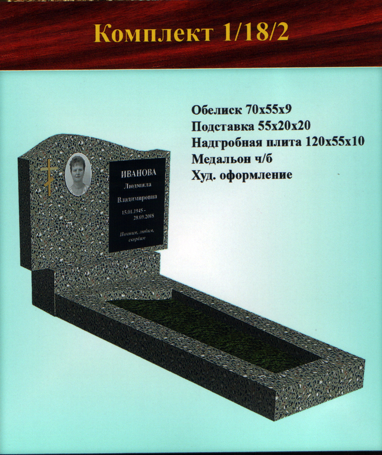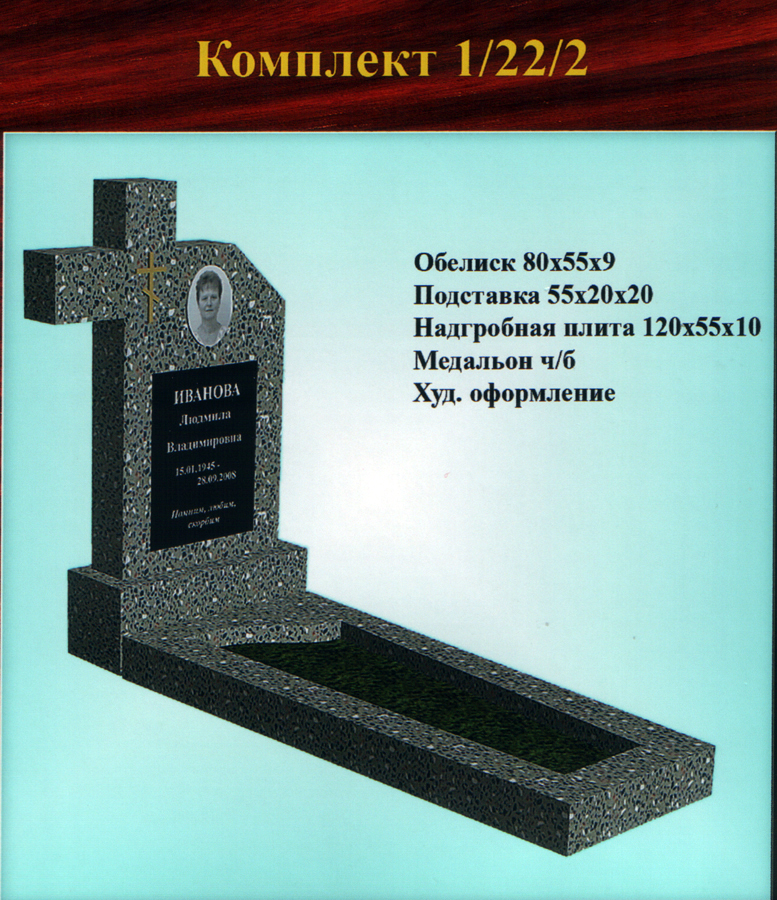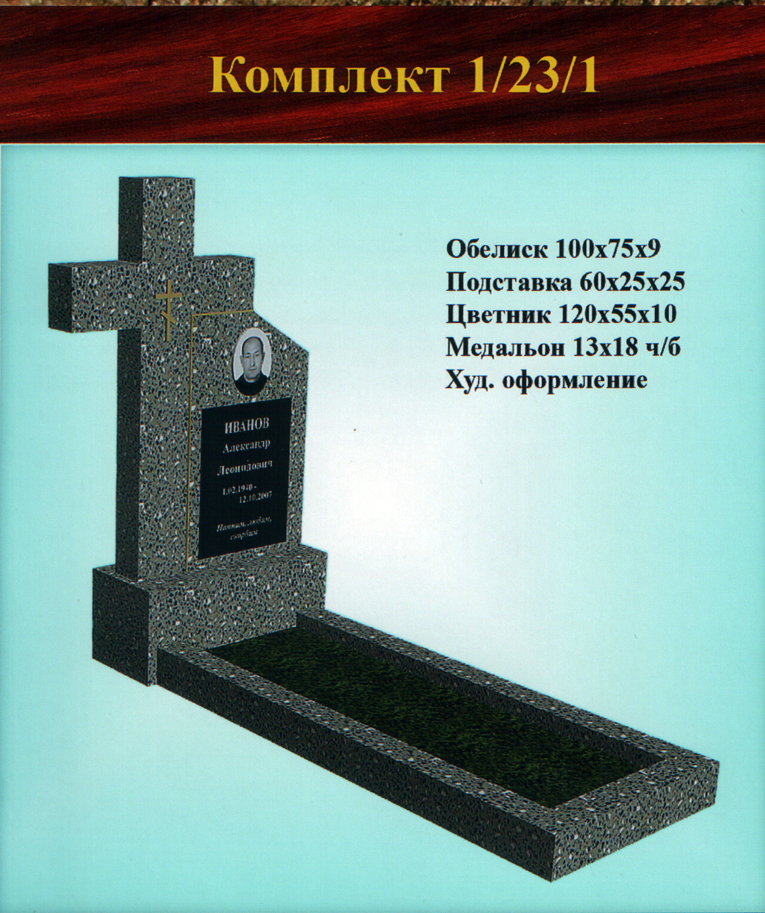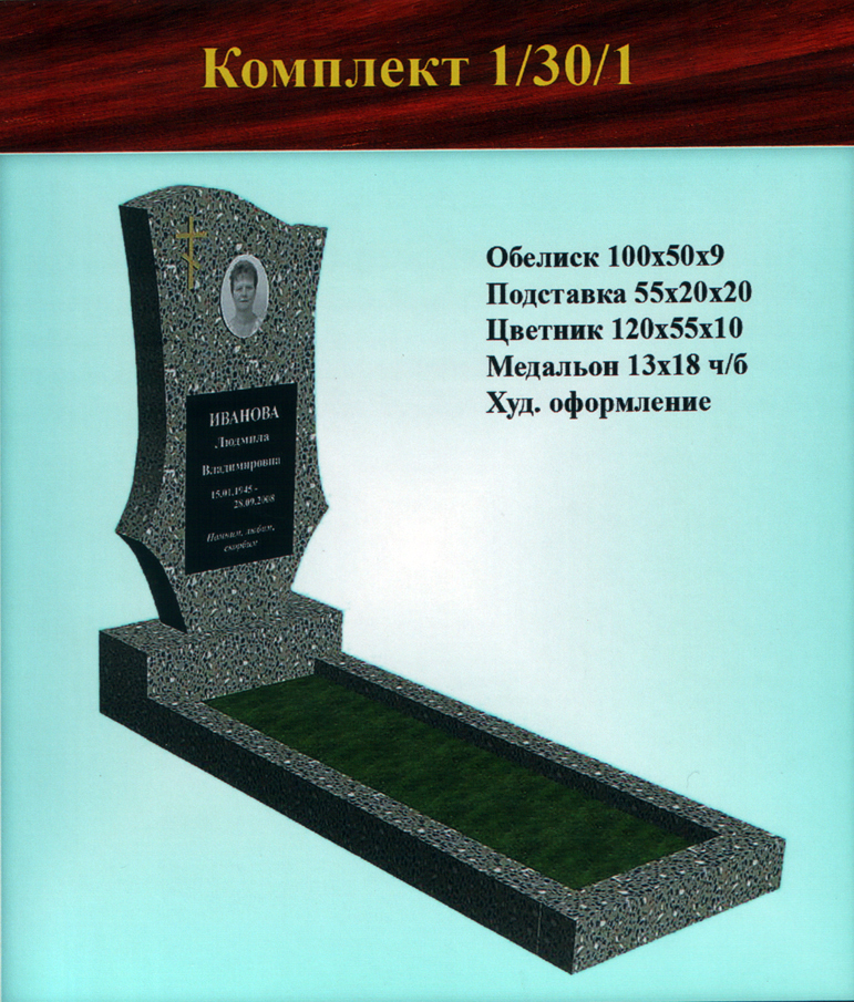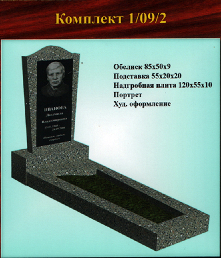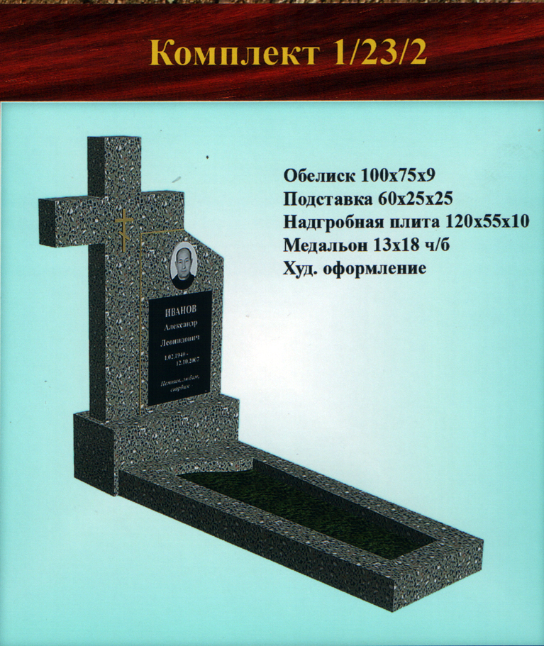 В данном разделе представлены стандартные модели одиночных памятников из гранитно-мраморной крошки, разработанные на основании наиболее часто заказываемых клиентами форм. Цифровое обозначение комплектов (обелиск+подставка+цветник) одиночных памятников из крошки имеет следующее значение: