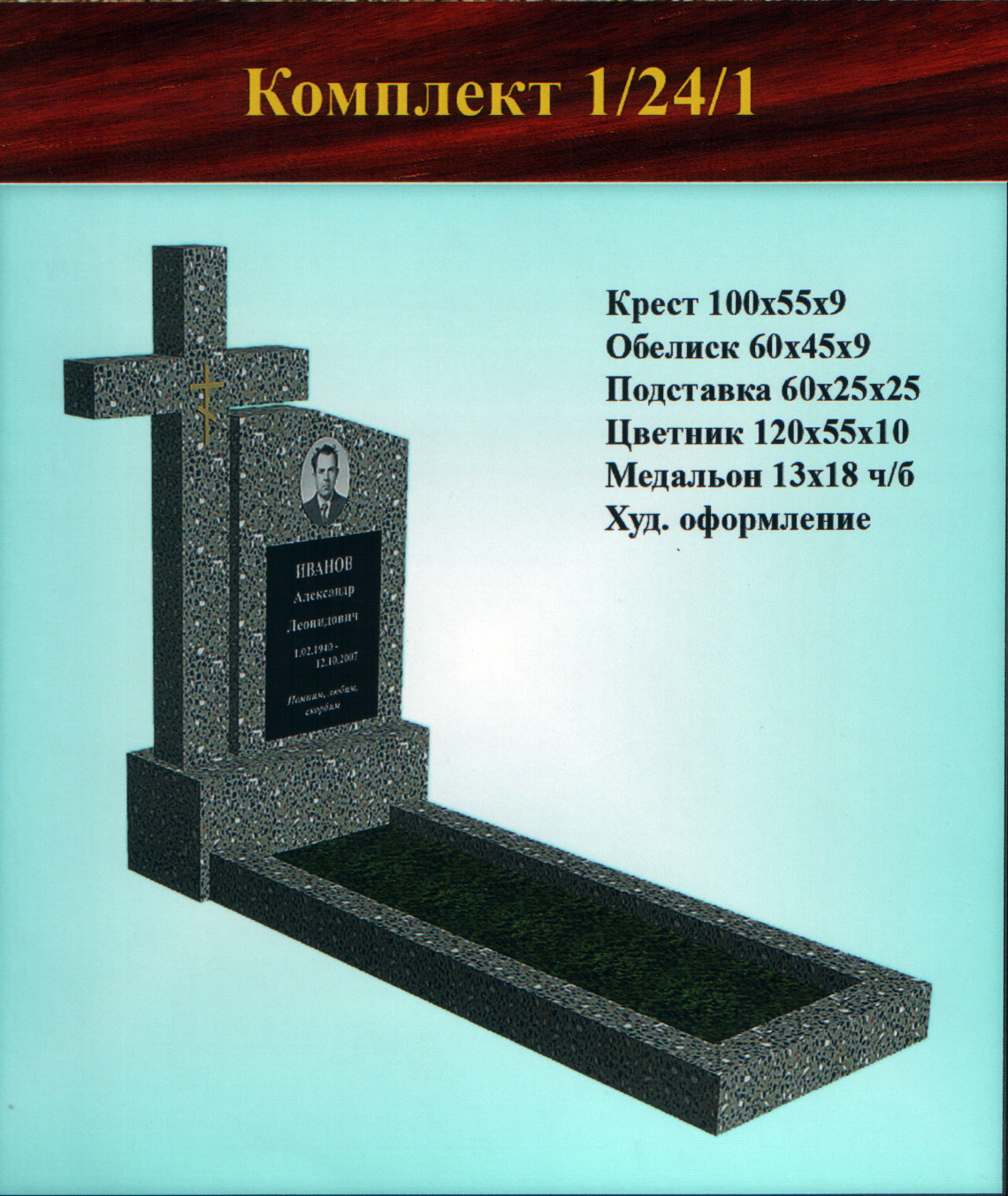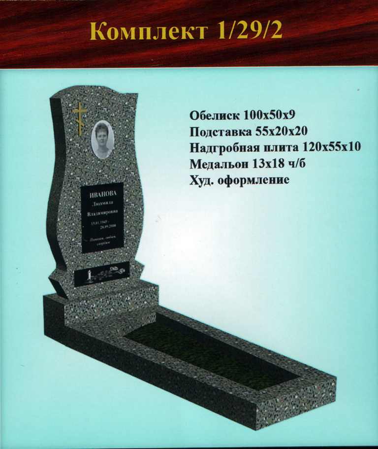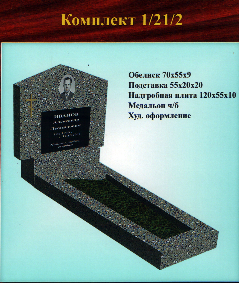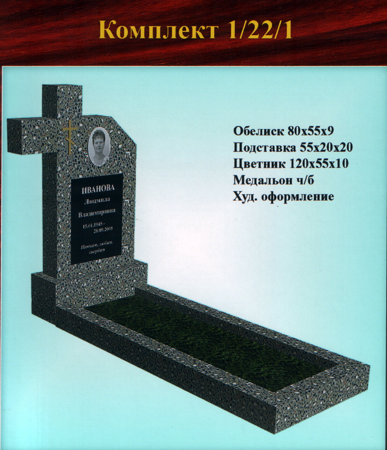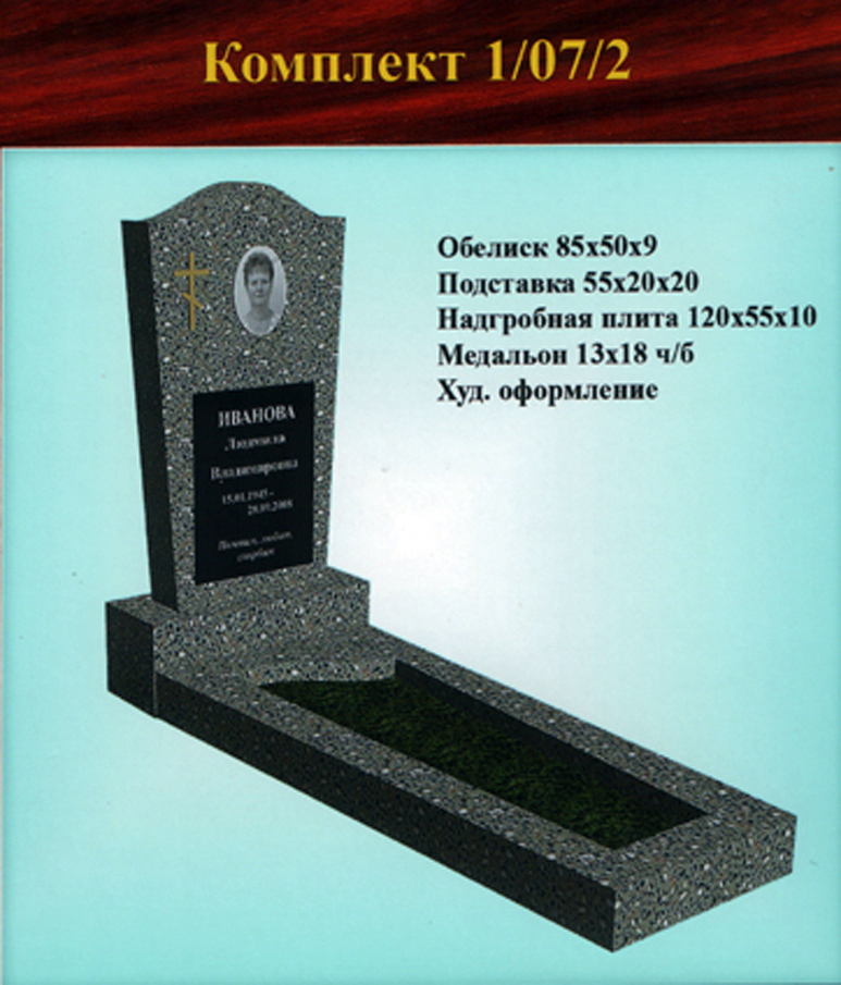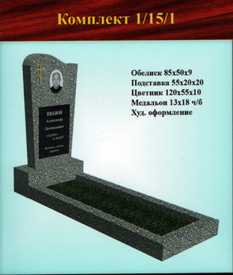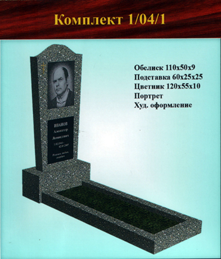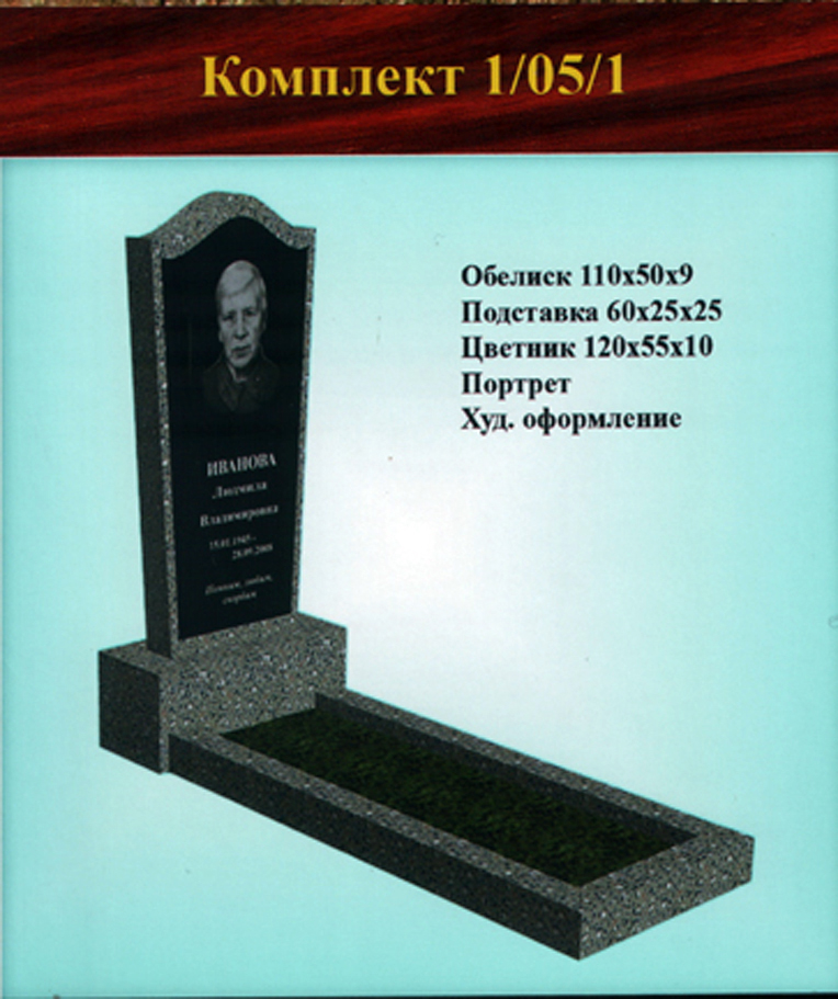 Однако, желание клиента — закон, поэтому, если Вас устроит другой вариант, не представленный в стандартных формах одиночных памятников из крошки, мы всегда готовы внести изменения в Ваш заказ и заменить одну подставку на другую, либо увеличить гранитную плитку, чтобы можно было выбить портрет на той форме обелиска, где стандартно предусмотрен медальон.