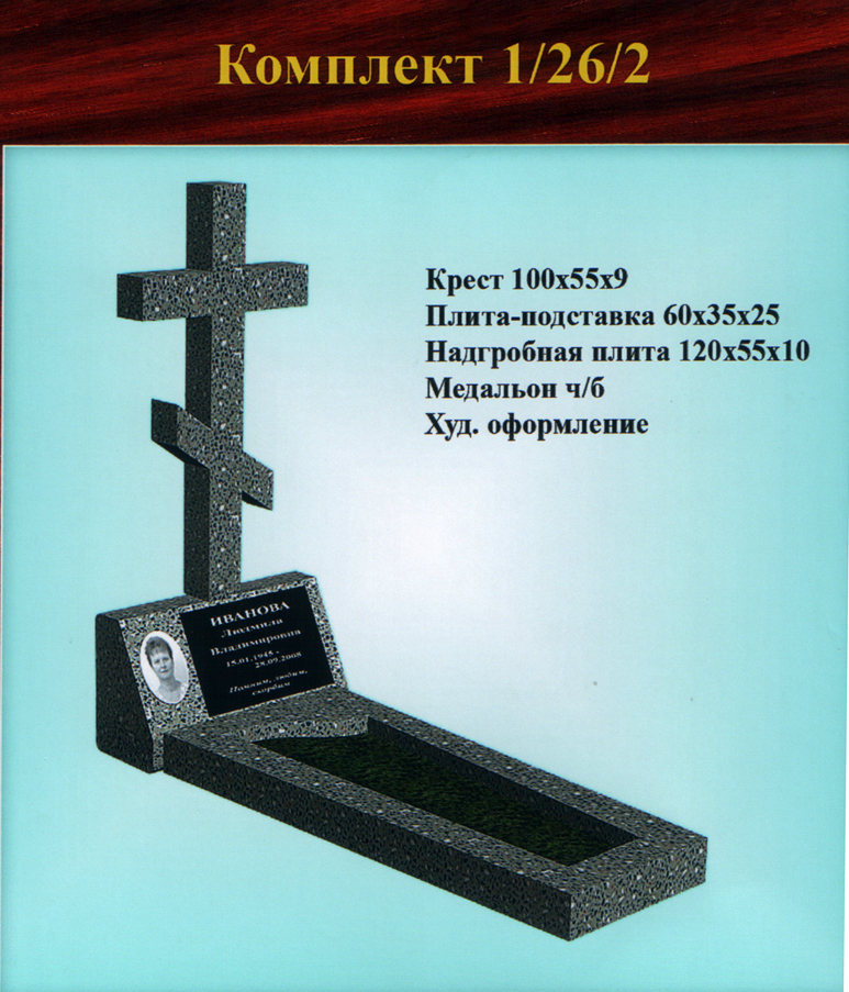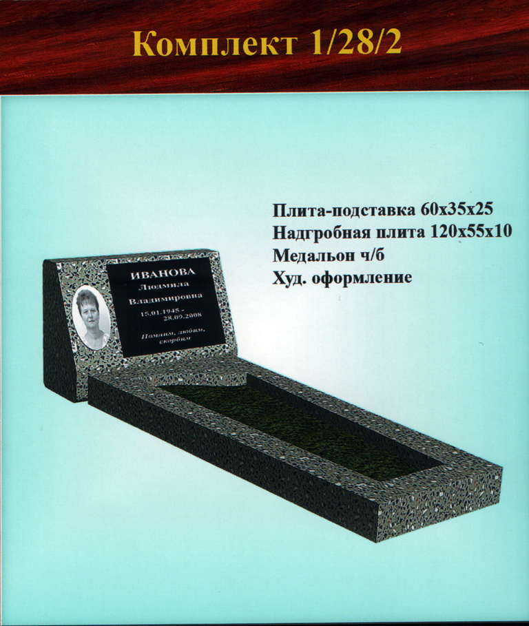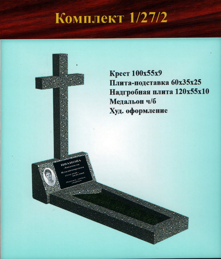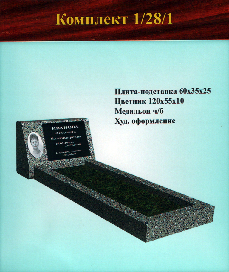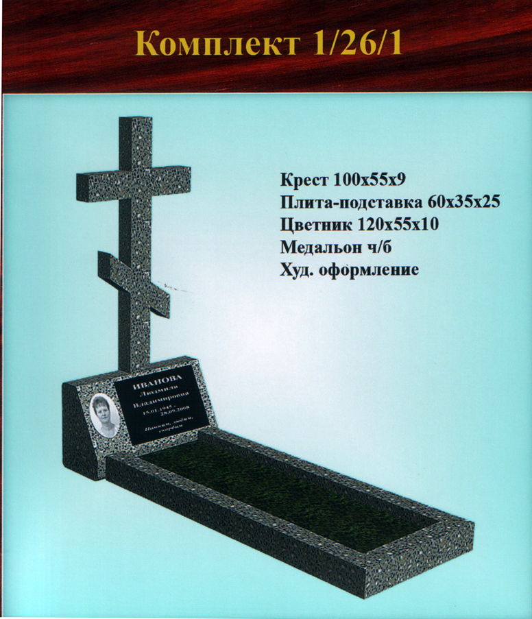 - 2 — цельнолитой цветник (надгробная плита с отверстием внутри и с закруглением для вазы/иных предметов) (размер 120х55х10 см).